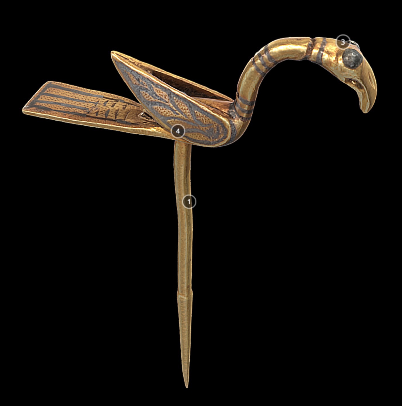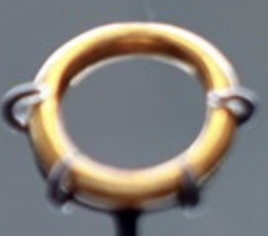I chose to show some of the items of the find spilling out from the vessel which engraving I modified to have Laurel branches as part of the design. I created bars raised by gesso and covered in 12K gold leaf to mimic silver (but won’t tarnish like silver leaf), rings done similarly in 23K gold, a bird pin done in shell gold and gouache, and beads from the find tumbling out and rolling across the bottom of the page done in gouache. All done on true vellum.
