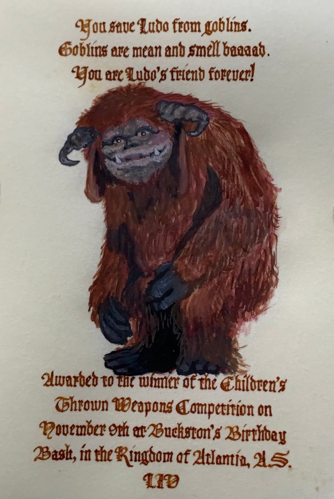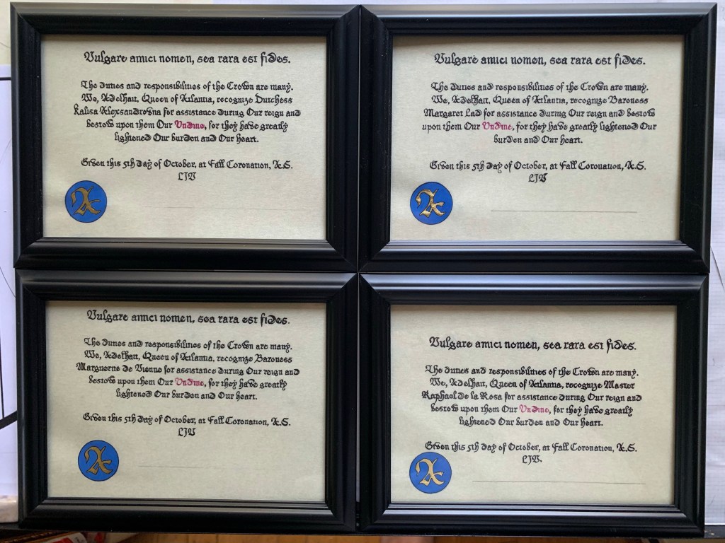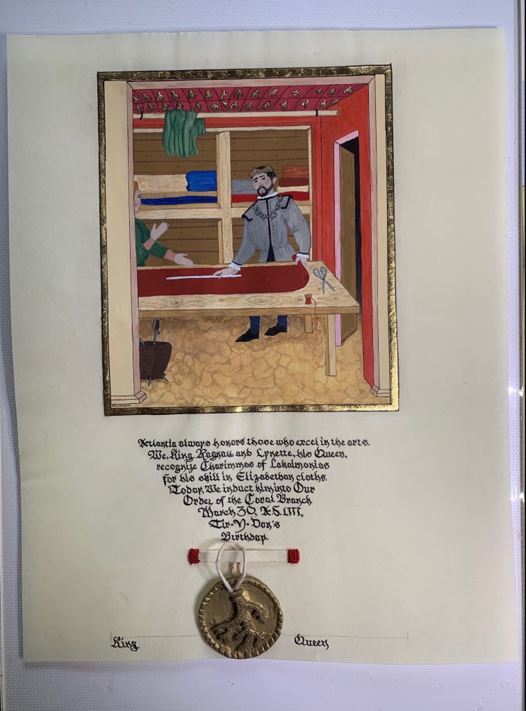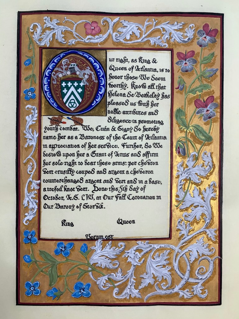 Scribal Work 2019 Children’s Competition Award Competition Award Mystery Item Coronation Competition Undine Scrolls (+aprons) Coral Branch Golden Dolphin Coral Branch Fountain Opal Order of the Boreas Fighting Competition Award Fighting Competition Award Order of the Boreas Share this: Share on X (Opens in new window) X Share on Facebook (Opens in new window) Facebook Like Loading...