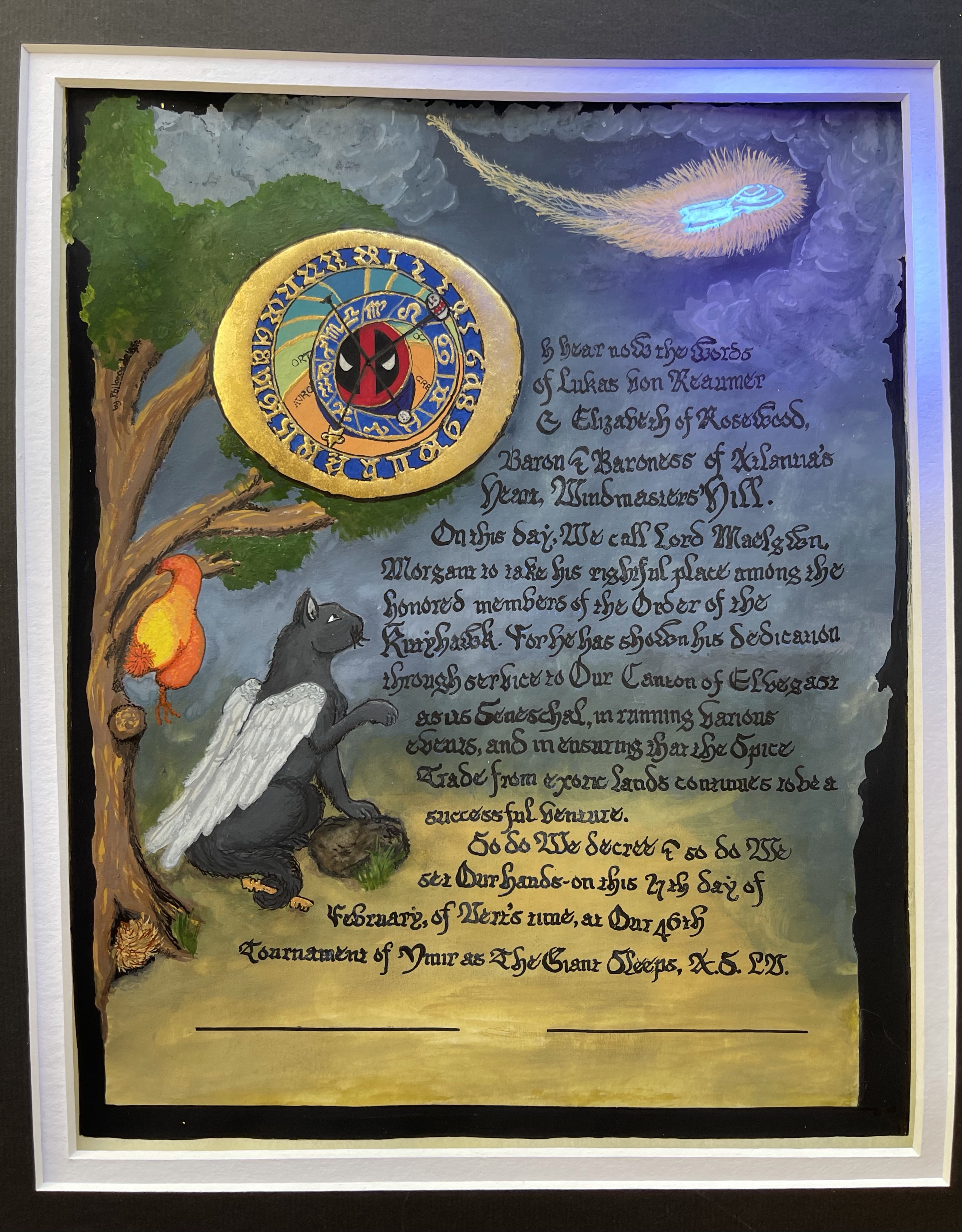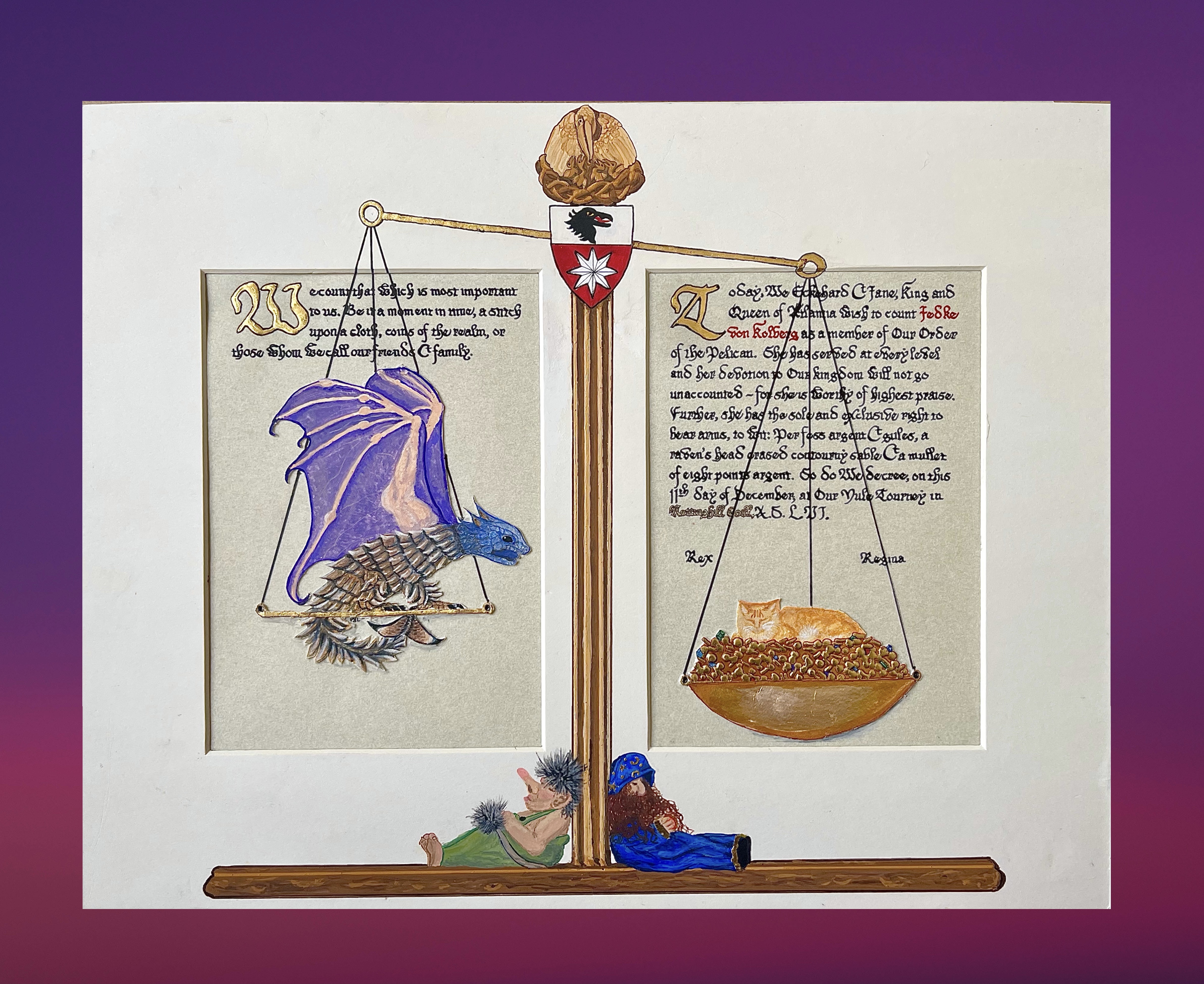 Scribal Work 2021 An Exchequer’s Pelican Order of the Laurel Golden Dolphin Opal Order of the Golden Dolphin Order of the Pelican Order of the Pearl Coral Branch Fountain Award Kitty Hawk Baronial Award Court Baronage Scrolls Awarded in 2021 Backlog White Scarf phénakistoscope for Count Dietrich Share this: Share on X (Opens in new window) X Share on Facebook (Opens in new window) Facebook Like Loading...